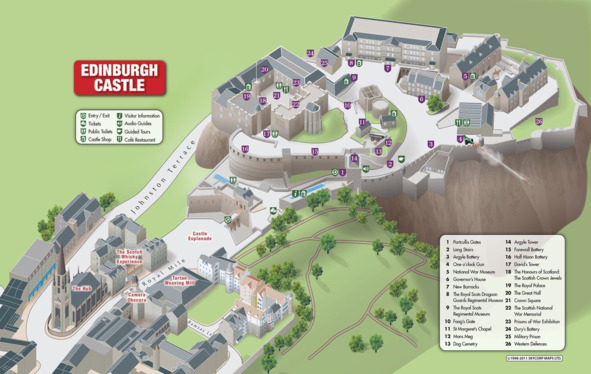 Впрочем, мы отвлеклись от основной темы… Не забудем, что замок, возвышающийся на 130 метров над уровнем моря, со скалистыми утесами на юге, западе и севере производит впечатление абсолютно непреступной крепости. К нему ведет лишь одна дорога с восточной стороны, которая, к тому же, хорошо просматривается и простреливается. Поэтому лишь немногие завоеватели (англичане в 1296, 1335 и 1650 годах) могли похвалиться успешным штурмом замка. А все войны в стране, в конечном счете, сводились к осаде именно Эдинбургского замка, который именуют не иначе как «ключом к Шотландии».