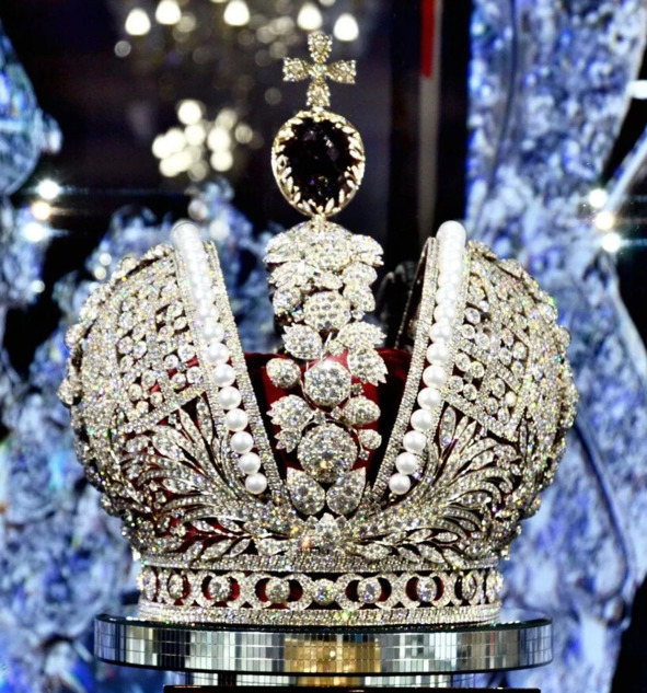 Поистине это зрелище для тех, кто не страшится быть ослеплён невероятным сочетанием роскоши и совершенства форм. Чего стоит одна Большая императорская корона, изготовленная придворным ювелиром Экартом и бриллиантовых дел мастером Иеремией Позье для коронации императрицы Екатерины II в 1762 году. Царский венец, который стал главным атрибутом при церемонии возведения на престол Екатерины Великой и всех последующих самодержцев России, украшен 4 936 бриллиантами, оправленными в серебро, и увенчан большим красным камнем из рубиновой шпинели. С царской короной готовы, пожалуй, посостязаться и самые знаменитые бриллианты сокровищницы Кремля. Это алмаз «Орлов» весом 189,6 карат, считающийся одним из самых крупных черных бриллиантов в мире. В паре с ним по изяществу – алмаз «Шах» весом 88,7 карат, подаренный Великими Моголами Николаю I «во искупление» убийства в 1829 году в Тегеране дипломата и драматурга А. Грибоедова.