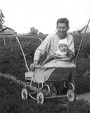 11.05. Жорж Коваль и Андрюша Макаров (шести месяцев от роду), 1950 год, летний отдых в с. Дмитровское у впадения Истры в Москву-реку.[15]