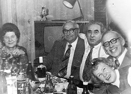 11.11. Семейное застолье с друзьями… (1970-е годы. Сидят мужчины: Б. И. Степанов, В. Маркос, Ж. А. Коваль).[23]