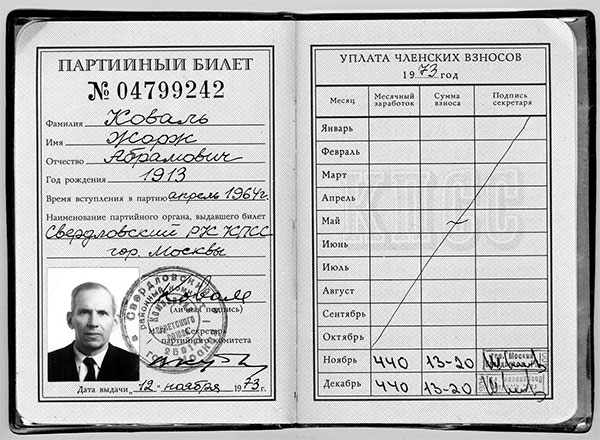 11.19. Партийный билет Ж. А. Коваля.[34]
