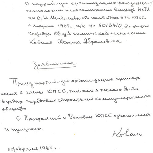 11.23. Заявление Ж. А. Коваля о приёме в члены КПСС.[47]