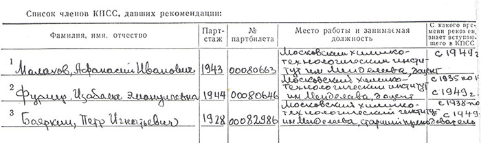 Любопытно, кто давал Жоржу рекомендации для вступления в партию. В то время их требовалось три. Рекомендации дали Афанасий Иванович Малахов, Изабелла Эммануиловна Фурмер и Пётр Игнатьевич Бояркин.