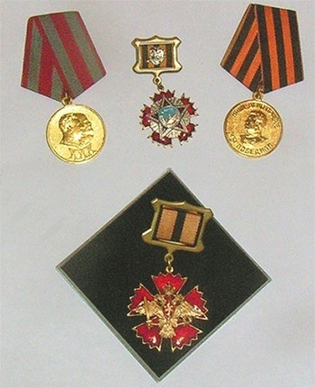 На фотографии представлены награды, полученные Жоржем непосредственно в ГРУ: медаль «XXX лет Советской Армии и Флота», значок «Ветерану ГРУ», медаль «За Победу над Германией в Великой Отечественной Войне 1941–1945 гг», Нагрудный знак «За службу в Военной разведке».