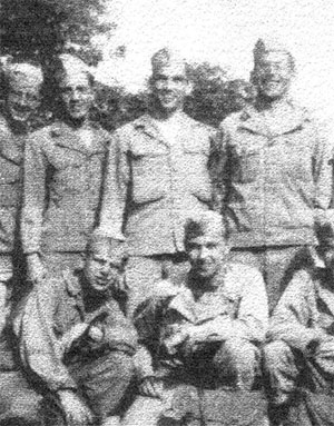 12.30. Увеличенный фрагмент фото из газеты «Commentary». А. Крамиш (сидит первый слева) и Ж. Коваль (стоит первый справа) – солдаты армии США в Ок-Ридже 9 авг. 1944 г.[185]