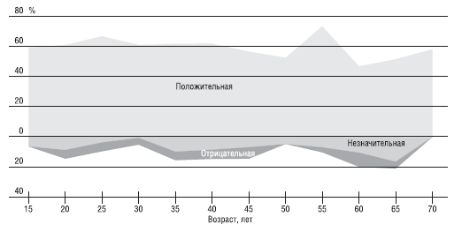 В отечественных условиях имеющиеся в нашем распоряжении данные опросов общественного мнения позволяют непосредственно представить распределение позиций возрастных групп на протяжении примерно одного десятилетия, с конца 80-х годов. Представительство различных возрастных групп в наличном населении, а значит, и в любой выборочной совокупности, неравнозначно: на поколенческую («историческую») структуру населения наложена современная («возрастная»), разделить их можно лишь гипотетически. Кроме того, установки и оценки нынешних пожилых людей, которые могут рассматриваться как представители поколений, доминировавших в определенный период, претерпели несомненные изменения, возможно, в разных направлениях.