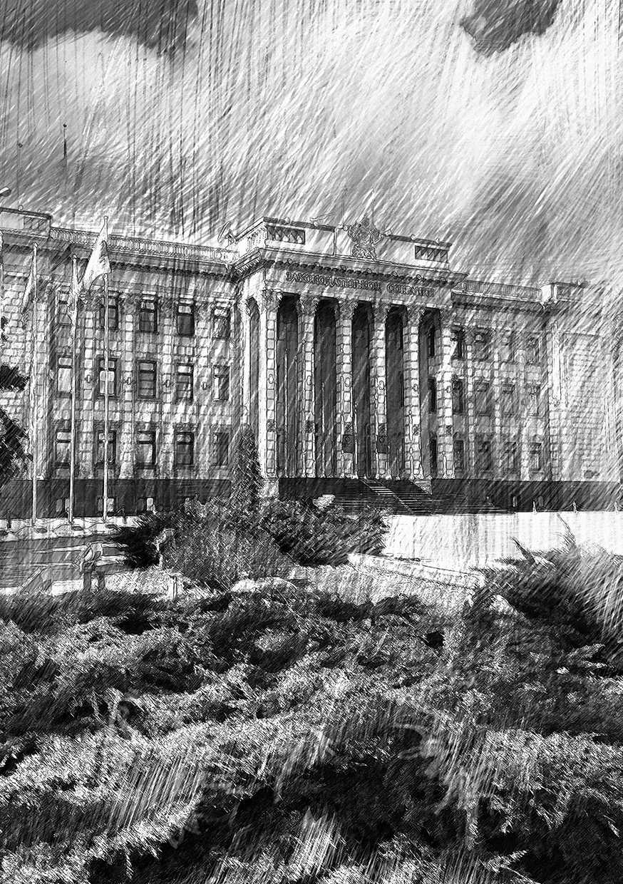 Позднее акцент наших ознакомительных прогулок переместился на маршрут по левой стороне улицы. Там мы по пути не могли не разглядывать внушительное по размерам здание Законодательного Собрания Краснодарского края и установленные перед ним флаги всех муниципалитетов региона, а затем, через несколько кварталов, не менее солидное здание Администрации Краснодарского края, на фоне которого выделяется памятник кубанскому казачеству; не заметить далее вывески, рекламные материалы и входы в восточную часть огромного, как потом выяснилось, по своим размерам ТРЦ (торгово-развлекательного центра) «Галерея Краснодар» (его главный вход расположен на углу Красной и Северной улиц); не обратить внимание на один из корпусов Кубанского государственного технологического университета с памятником студентам, преподавателям и сотрудникам этого университета, погибшим на фронтах Великой Отечественной войны, который установлен возле него, а также на универмаг «Краснодар» с его весьма оригинальной архитектурой, находящийся уже на перекрёстке улицы Красной с улицей Одесской.