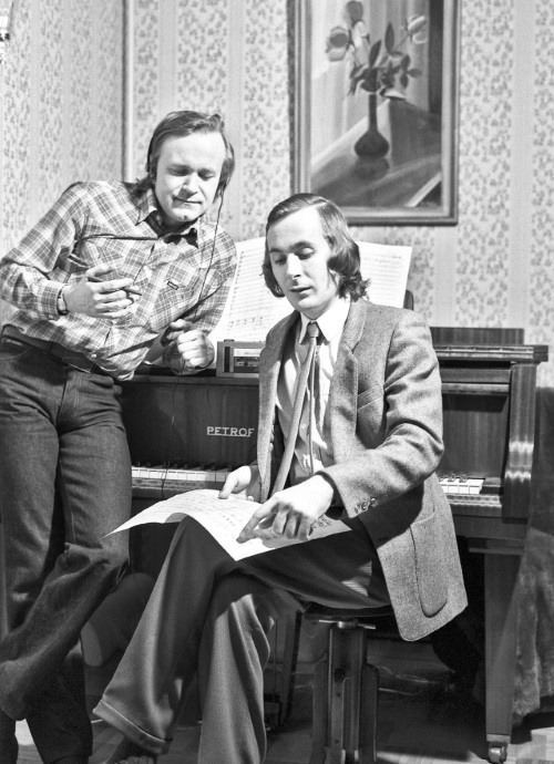 Я хорошо помню, как и когда писалась каждая из наших с ним песен. Помню, как до поздней ночи просиживал Женя у нас дома за пианино и всё играл и играл рождавшиеся в нём мелодии. Иногда он на ходу изменял что-то, прислушивался, вновь возвращался к первоначальному варианту и непременно напевал то, что получилось. И лишь потом, когда он завершал эту часть работы, я, наполненный его музыкой, начинал думать о стихах. В большинстве случаев наши песни сочинялись именно так – сначала мелодия, затем стихи. Нередко слова рождались сразу, а чаще на поиски темы, на писание стихов уходило много дней и даже недель. Женя терпеливо ждал, но я-то видел, как внутренне он торопится. Ему не терпелось скорее отдать песню людям, записать её на радио и телевидении, почувствовать, что и на этот раз пришла удача.