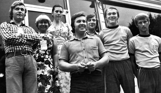 Слева направо: Евгений Мартынов, Александра Пахмутова, Валентина Толкунова, Лев Лещенко, Генадий Хазанов, Олег Блохин, Леонид Буряк