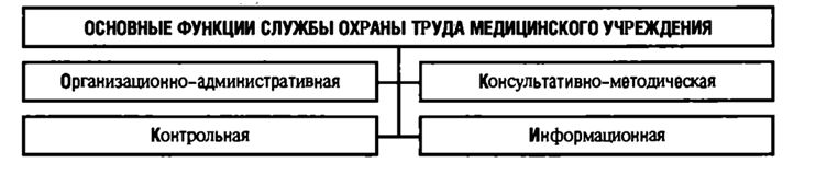Основные функции службы охраны труда медицинского учреждения представлены на рис. 5.1. Вариант организационной структуры службы охраны труда медицинского учреждения представлен на рис. 5.2.
