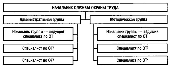 б) служба охраны труда включается в состав одного из структурных подразделений медицинского учреждения – например, управления (администрации) – с подчинением начальника службы руководителю этого структурного подразделения.