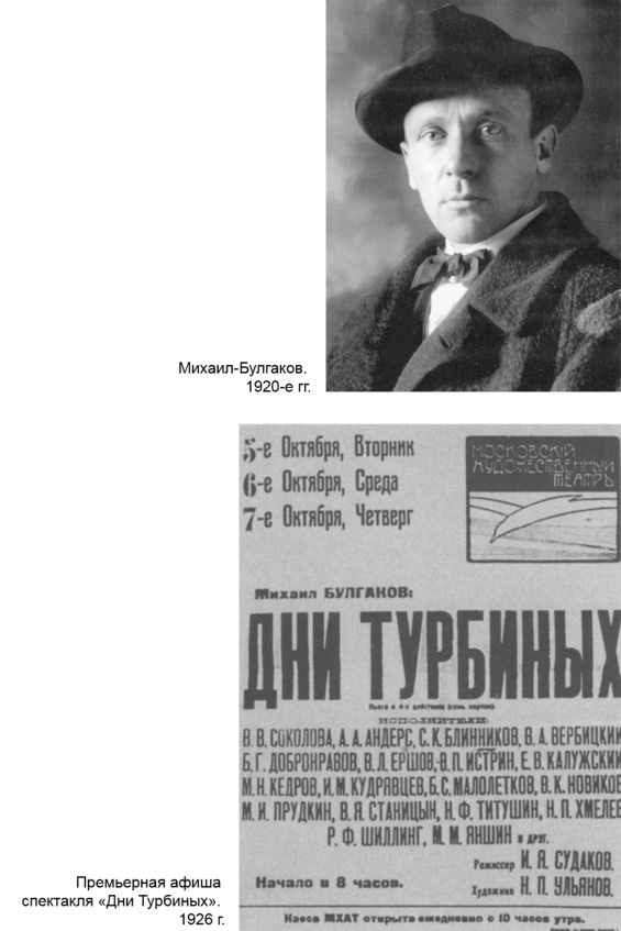 – Или взять, например, этого самого всем известного Булгакова. Если взять его «Дни Турбиных», чужой он человек, безусловно. Едва ли он советского образа мысли. Однако своими «Турбиными» он принёс всё-таки большую пользу, безусловно.