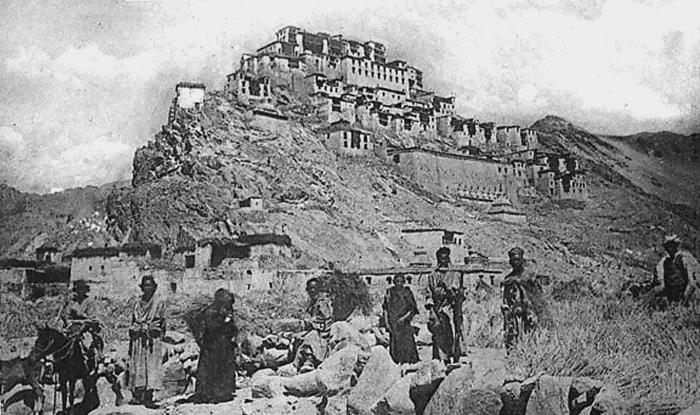 Деревня Шел, расположенная на правом берегу, когда-то была столицей Ладакского княжества и славится древними наскальными надписями и каменными скульптурами. На крутой скале очень романтично расположился монастырь желтошапочников Тик-це (Криг-рце), но, несмотря на это, выглядит запустевшим. Его населяет толпа грязных и невежественных монахов, нагло вымогающих подаяние, отличающихся отсутствием дисциплины, монашеского достоинства и всех тех качеств, которые присущи обитателям монастырей Спитуг и Ридзонг. Их настоятель, разочаровавшись в монашеской жизни, был вынужден покинуть монастырь. Новой инкарнации не произошло, и монастырь был предоставлен сам себе. Здесь нам посчастливилось найти несколько древних бронзовых изделий и старые раскрашенные знамена. Некоторые из дверей монастыря украшены интересной резьбой. Сильное впечатление произвела колоссальная статуя Будды Будущего, освещенная многочисленными жертвенными лампадами. Однако груды мусора в углах храма и толстый слой пыли на предметах культа лишь усиливали ощущение заброшенности. Несомненно, здесь можно было бы найти много интересного, но царящий повсюду беспорядок препятствовал проведению тщательных исследований монастырских построек.