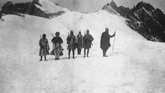 Утро 20 сентября было великолепным; ничто не напоминало о тяготах предшествующей ночи. Вскоре караван, вытянувшись в длинную цепочку, уже поднимался по горной тропе. Мы ехали верхом на яках, и кавалерийские седла на лохматых черных животных выглядели очень странно. Яки незаменимы во время горных переходов, и многие путешественники с похвалой отзываются о их выносливости. Подъем на Кардонг сравнительно легок для них, но для лошадей все же слишком крут. Чтобы достичь покрытой снегом вершины перевала, нам потребовалось целых три часа Во многих местах мы видели замерзшие капли крови – следы прошедших здесь караванов. У людей и животных на таких высотах часто возникает кровотечение. С вершины перевала горы напоминали волны огромного моря, увенченные сверкающей белой пеной.
