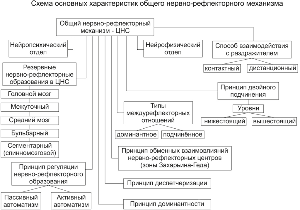 Схема основных характеристик общего нервно-рефлекторного механизма
