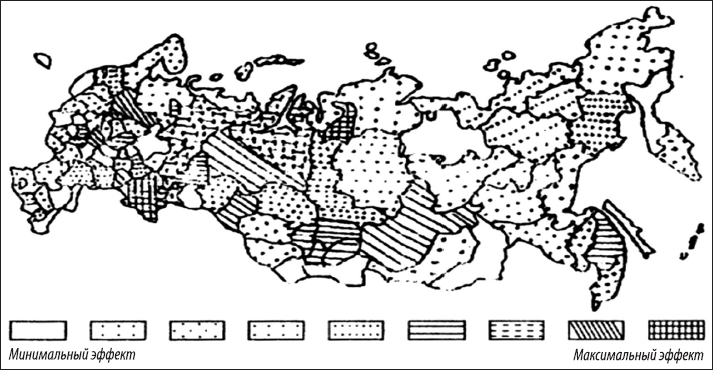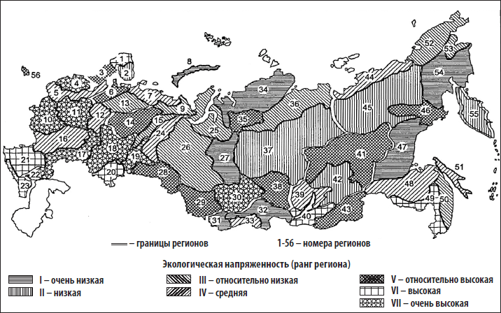 Рис. 3. Комплексное районирование территории России в отношении экологической и социально-экономической ситуации [128]