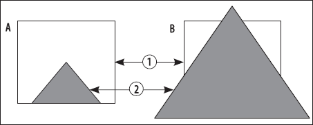 Рис. 10. Концептуальная схема вариантов оптимального и нарушенного соотношения рекреационно-метаболического потенциала биосферы (1) и величины антропогенной нагрузки (2)