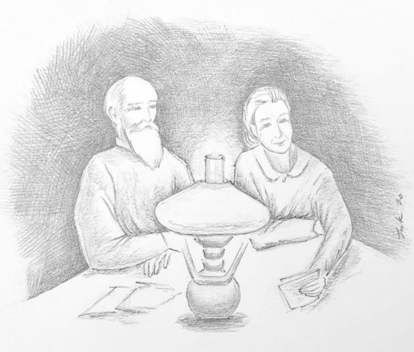 В этот день я задержался в школе допоздна, готовя с ребятами новогодний номер стенгазеты. Когда же, усталый и продрогший, прибежал домой, я увидел вот что. Мама постелила чистую скатерть, зажгла лампу с зелёным абажуром и, притихшая, сидит у стола, а папа, подняв очки на лоб, держит у самых глаз письмо и читает вслух. А на столе лежит ещё стопка писем, и я догадываюсь, что это от его бывших учеников, которые теперь сами учителя, агрономы, партийные работники. Они ему всегда пишут под Новый год из Москвы, Вологды, Ленинграда, Великого Устюга и многих других мест, а папа всегда читает вслух, радуется и попутно вспоминает что-нибудь из их школьной жизни.