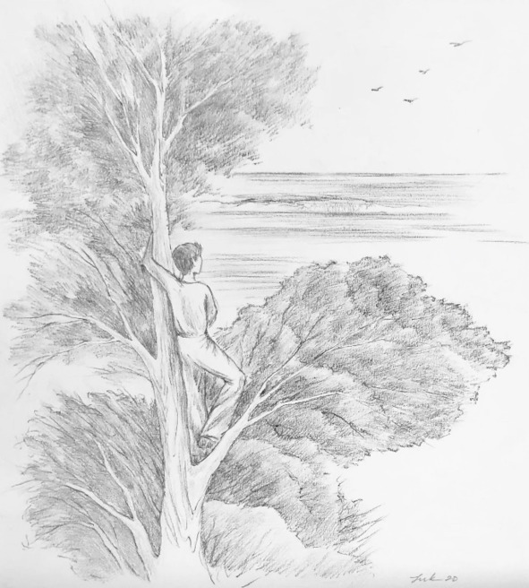 У Александра Михайловича крепкая, кирпичного цвета, шея, худощавое лицо, над высоким благородным лбом с глубокими залысинами – вьющийся золотистый хохолок. Он большого роста, плечистый, статный. Когда он говорит или поёт, заметно, что у него нет многих зубов: это от цинги, которую он перенёс во время полярной зимовки. А поёт он – матросские песни или старинные романсы под гитару – так, что по спине мурашки пробегают: он дважды выступал у нас в клубе. И он красиво смеётся: «Хо-хо-хо!» – сдержанным баском и немного трясётся при этом. Я люблю его слушать и смотреть на него: по-моему, он самый выдающийся у нас в Явенге человек, такой, что мне иногда хочется быть им…