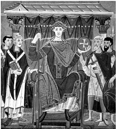 Рис. 1–5. Оттон III. По правую руку от императора – Герберт (из средневековой рукописи).