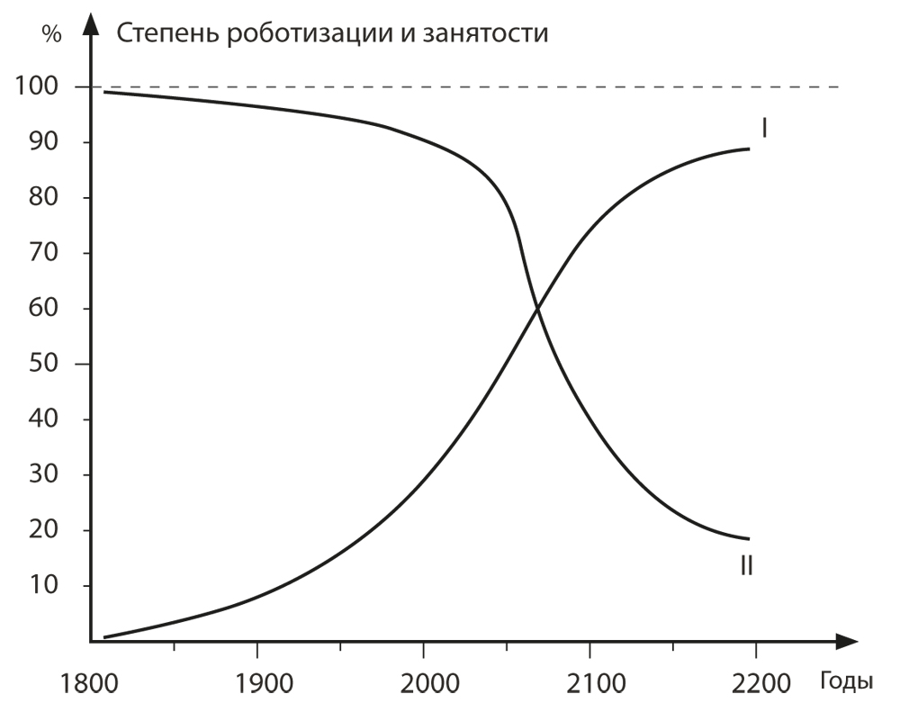 Рис. 1. Прогноз возможного роста роботизации и падения занятости населения