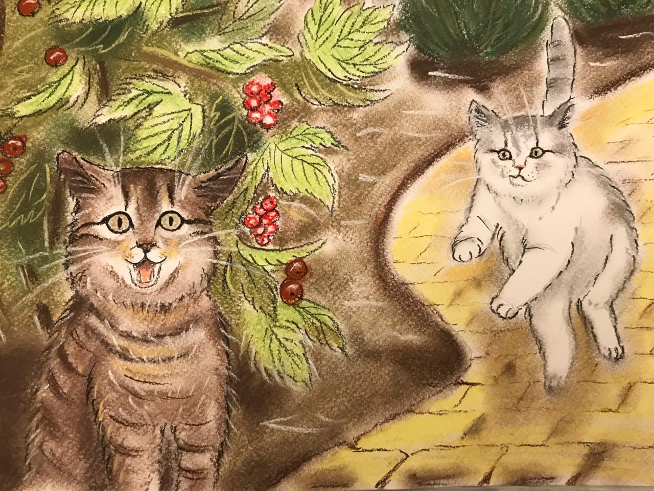 Они вернулись с ягодами и с громким мяуканьем. Хозяева были очень рады.