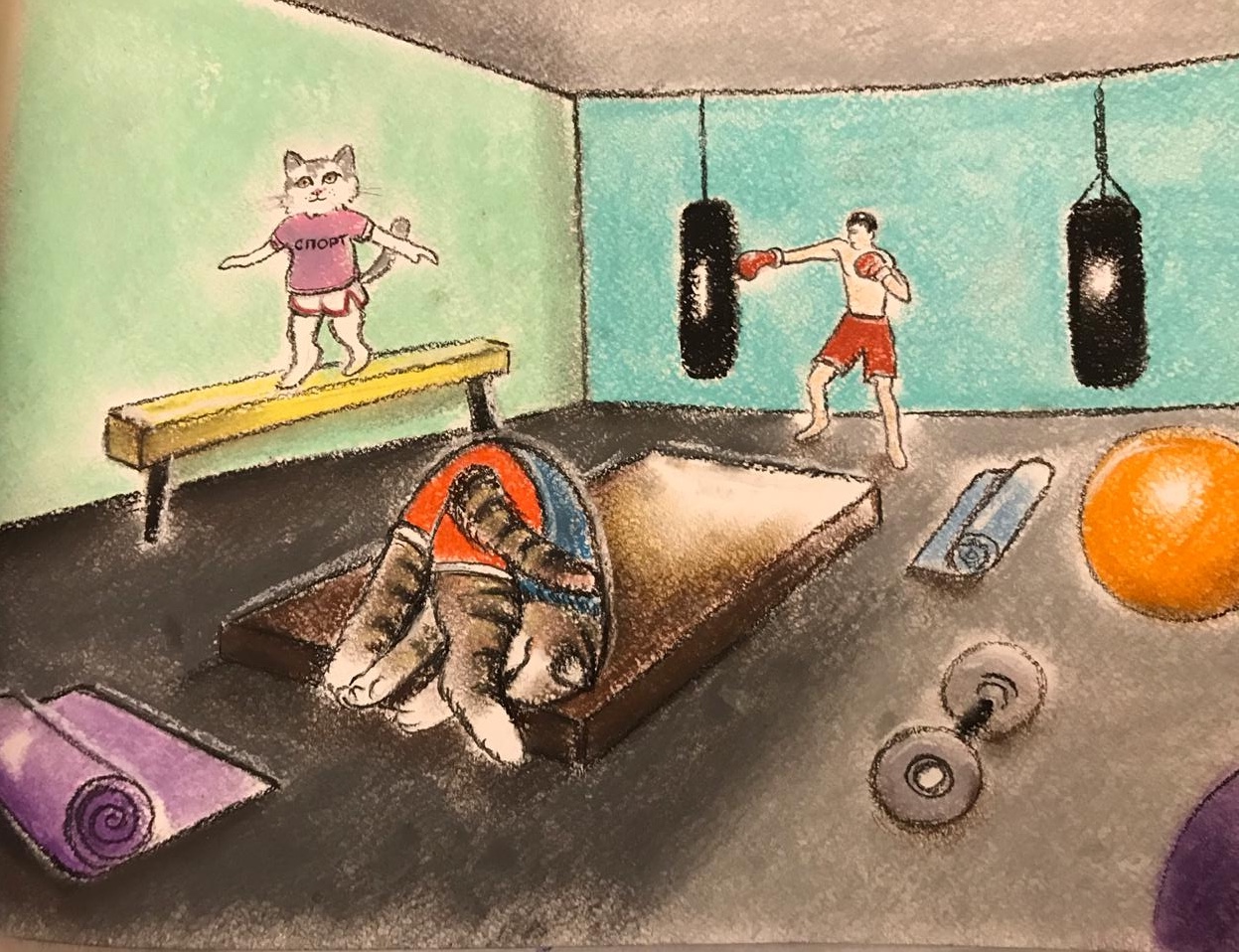 четыре лапы, только шиворот навыворот, животом вверх. Трудно кошкам осваивать такое. Но интересно. И им ещё пообещали, что научат ходить колесом, переворачиваясь с передних лап на задние. Вот мы будем дома беситься, как два колеса! Хозяева будут аплодировать, такое есть слово, значит хлопать в ладоши. И ещё задание кошкам дали, растягивать дома задние лапки, чтобы садиться в шпагат. Кошки будут это делать с удовольствием. Скоро зима. Ловить некого. На улице мыши не гуляют, сидят по домам глубоко в норах. Вот кошки и займутся гимнастикой. Полезно и красиво. Жаль, что мыши не занимаются гимнастикой. Кошкам было бы веселее. Спорт делает всех здоровыми, красивыми, сильными и ловкими. Даже мышек. А с ловкой мышкой и кошке интересней.