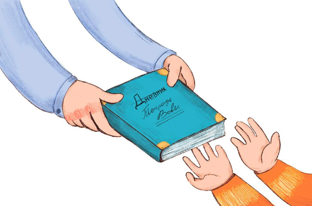 Но папа стал убеждать его, что когда он вырастет, он прочтет свои записи, вспомнит свое детство, друзей и все события, которые с ним происходили. И ему будет очень приятно и весело.