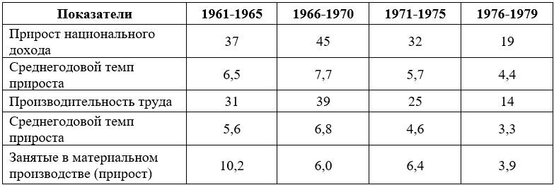 Однако уже к концу 8-й пятилетки наметилось замедление социально-экономического развития страны, усилившееся в годы последующих пятилеток, что видно из приведенной ниже таблицы.