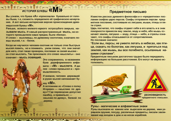 Вы узнали, что буква «А» «произошла» буквально от головы быка, т.е, схожесть определило её графическое начертание. А вот интересная версия происхождения древнерусской буквы «М».