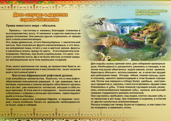 Итак, много миллионов лет назад, до пришествия Христа, исторического материализма, и миссионерства, ныне засушливый и пустынный край в Восточно-Африканской рифтовой долине стал колыбелью человечества. Известно, что в зоне рифтообразования повышенная радиация. А где радиация, там и мутация, изменение в генном аппарате облучённого организма и на свет уже появляется потомство несущие в себе новые признаки. В этом месте и находился – экзотический рай, субтропики с озёрами и речными протоками, нерестящаяся рыба и птичьи базары… Эльдорадо в джунглях, кладовая Африки, в закромах которой – изыск изобилия. Лазать по деревьям необходимости не было, ходи и собирай. Для ходьбы нужны крепкие ноги, для собирания проворные руки. Необходимость расщеплять раковины и панцири и наличие под рукой обкатанных водой камней, позже привели береговых обезьян к использованию их в качестве орудий для добывания пищи. Отсюда гибкие, ловкие пальцы, руки и глазомер, намного превосходящий в этом бывших сородичей. Потом они перешли к отбору более удобных, заостренных предметов и, наконец, стали изготавливать орудия сами. Изменились и зубы. Стали помехой торчащие клыки, развились лопатообразные передние зубы, нужные для выскабливания содержимого раковин моллюсков. Они научились пребывать под водой, плотно смыкая губы и не пропуская в рот воду, при плавании и нырянии, в отличие от других сухопутных млекопитающих.