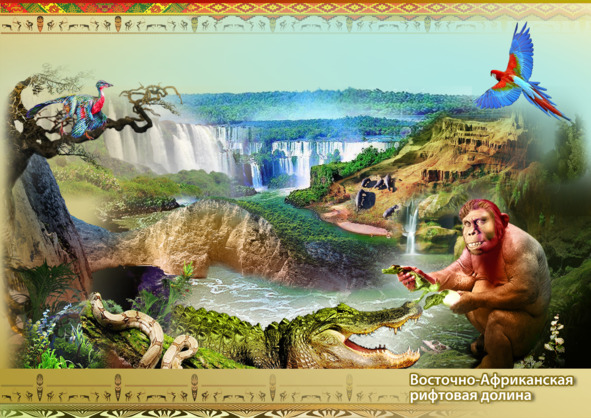 Природные ландшафты данной местности и сейчас разнообразны, включая горные массивы и южный берег озера, вулканический остров на озере и пустыню между ними. Это сейчас, а тогда это была воистину кладовая цитадель, куда и пробрался волей случая проворный примат, жируя впоследствии на дармовых харчах. А попал он туда как в пещеру сокровищ Али-Бабы, и каменная ловушка захлопнулась на миллионы лет…