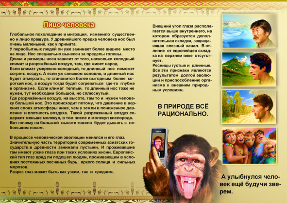 Глобальное похолодание и миграция, изменило существенно и лицо пращура.