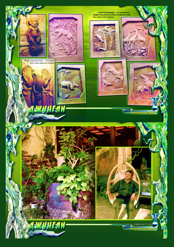 Далее: экзотическая скульптура, керамика, живопись. Экзотический интерьер зимнего сада является функциональным украшением, в основу которого заложены зрелищные эффекты.