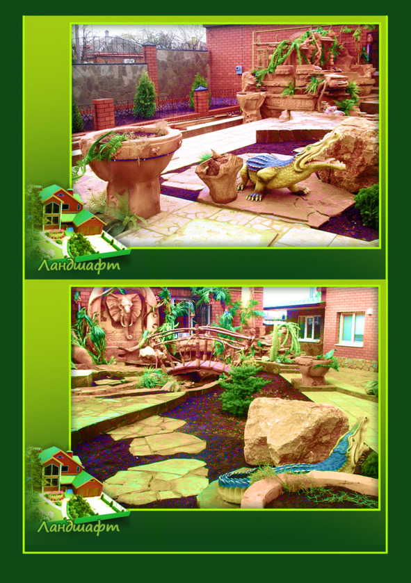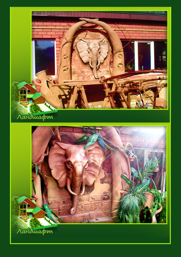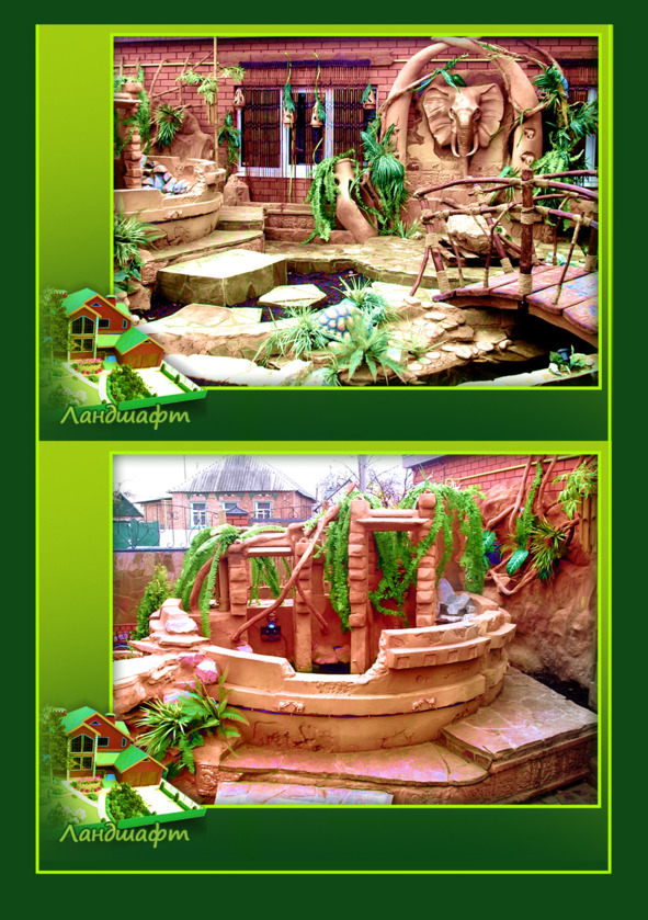 И это было сделано. Созданная композиция – имитация древнего античного африканского города. Сотрудники профессионально выполнили проектирование и реализацию самого объекта. Был выполнен ландшафтный проект дизайна участка с архитектурными формами. А так же: