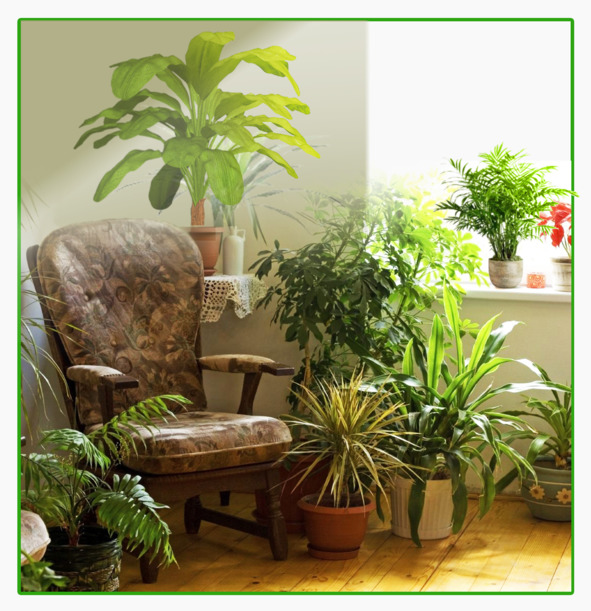 Озеленение искусственное сочетается с натуральной зеленью, высаженной в почву интерьерных композиций.