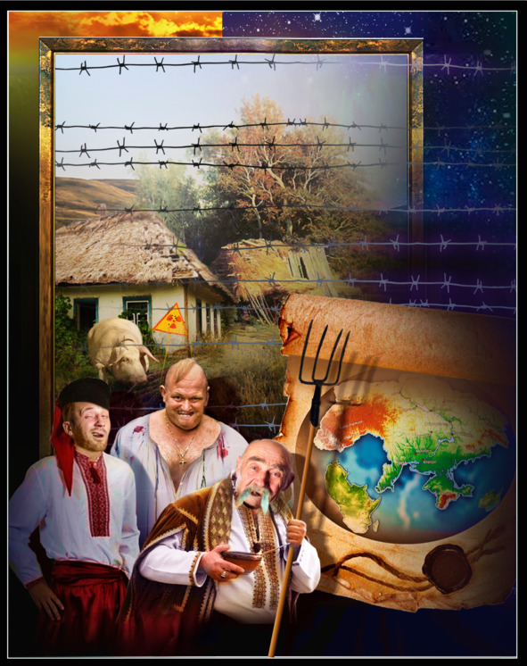 – А когда-то это были великие укры. Говорят, происхождение их имеет две версии: по Дарвину, пращуром их являлся укропитек, ореол его обитания – Волынь; полесье и бассейн реки Припять. Занимался он собирательством ягод, корешков и янтаря; охотясь на чужое имущество. А по божественной версии, укра вылепил Господь из глины, вымазал известью, как белого человека, а башку покрыл соломой и выпустил в райский сад… откуда потом и потурил за порчу и кражу яблок. В Древнем Египте укры стырили золото у фараона, свернув на евреев. И далее, в мире они везде оставляли свой след. Они выкопали палками-копалками Чёрное море, возводили валы и горы, отгородившись от москалей. Что не успевали спереть, ломали, увечили и портили… Портили землю и реки… Портили воздух… и окружающее пространство… Но они были великими и ужасными, круче, чем «Властелин колец» и «Волшебник изумрудного города»… из детской сказки… И у них была великая миссия – владеть всем земным шаром, согласно древней карте, которую они где-то раздобыли.