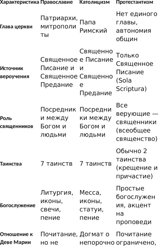 2. Сравнение православной, католической и протестантской церквей, а также их отличия от буддизма и конфуцианства