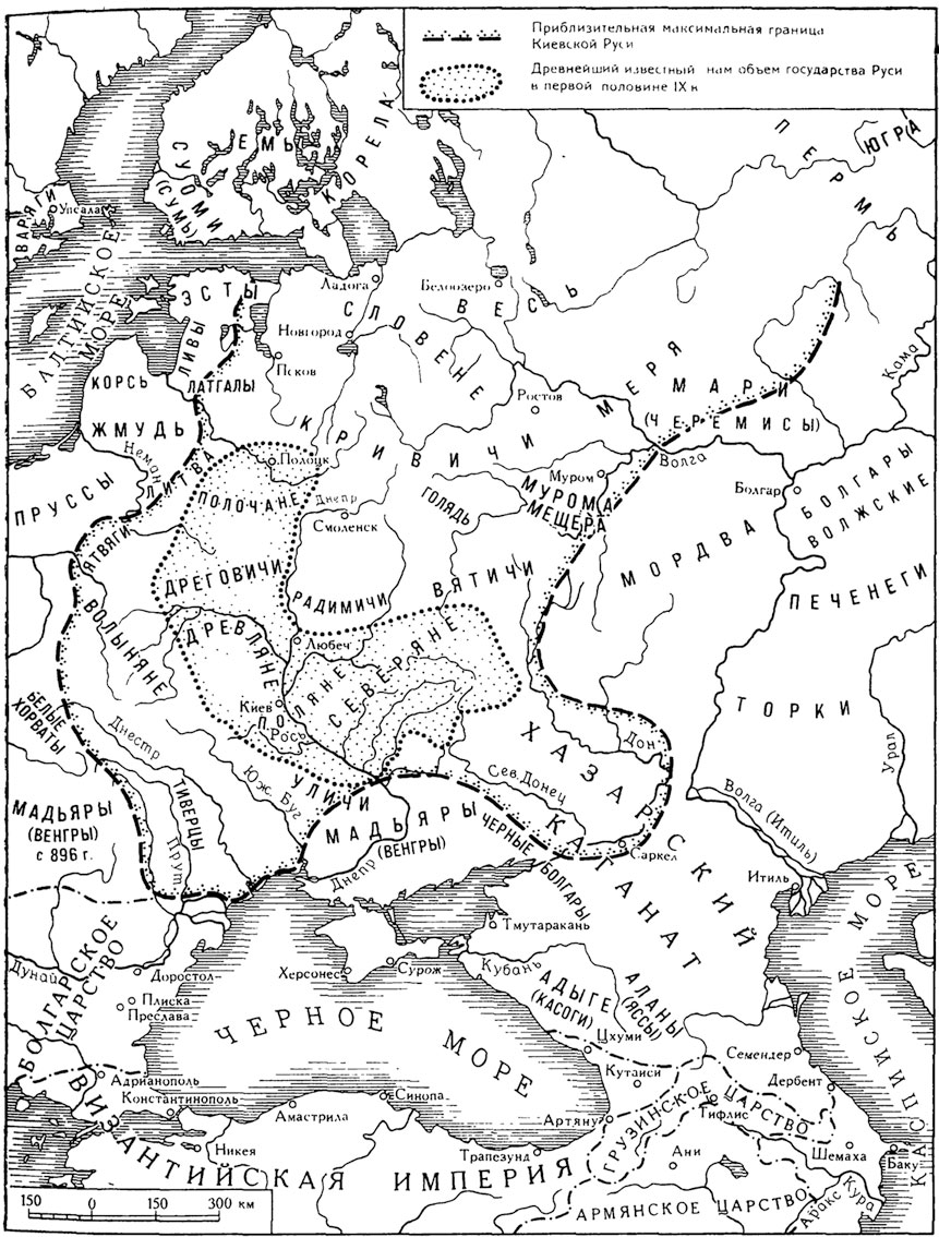 Очевидно, Святослав, учитывая варяжские традиции того времени и то, что на момент его рождения княгине было более пятидесяти лет, являлся приемным сыном Ольги. Имелись ли у Ольги родные дети от Игоря – неизвестно, но, в любом случае, до 945 года никто из них не дожил. Имелись ли иные братья у Святослава – опять же ничего не известно, хотя и логично предположить их существование. Причина, по которой десятилетний сын семидесятилетнего Игоря стал формально наследником верховной власти на Руси, непонятна[10]. В отношениях Ольги и Святослава с самого начала прослеживается какая-то тайна, недосказанность и напряженность. Ольга фактически до реальной власти Святослава не допускала, предоставляя ему право выступать в роли военачальника, т. е. имея власть военную, сын Игоря не имел власти политической. Когда же Святослав остался полновластным хозяином Руси, оказалось, что собственно Русь его не интересует и ее судьбой он вовсе не озабочен.