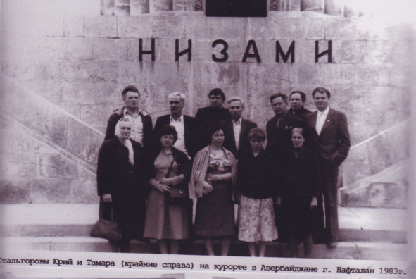 Примерно 15 апреля в свободный от процедур день мы с Тамарой поехали в Кировабад на экскурсию, которую организовал санаторий. Нас в группе набралось человек 10, с нами был экскурсовод. Он провел нас по городским улицам и сказал, что город до 1920-х годов назывался Гянджа и был в средние века столицей какого-то княжества. В конце экскурсии мы посетили мавзолей, где похоронен Низами Гянджеви – известный средневековый персидский поэт. Наша экскурсионная группа сфотографировалась возле мавзолея Низами на память.