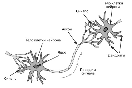 Рис.1.1. Упрощенная схема передачи сигнала в биологических нейронах