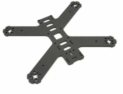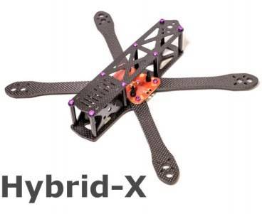 Фюзеляж этой рамы делается коротким, в виде квадрата, вся электроника собирается в центре, а лучи располагаются четко по углам квадрата. Рама получается одинаковая по длине и ширине, так как вес сосредоточен в центре, вес распределен равномерно, коптер становится более маневренным. Но, несмотря на данное преимущество, ограниченное место в центре делает сборку более сложной. Все компоненты приходится размещать «бутербродом», друг под другом, что не всегда удобно. Также очевидное преимущество такой рамы – удобное расположение видеокамеры, когда лучи рамы не попадают в кадр. У рамы типа «X» более высокая устойчивость к мелким авариям. Наиболее частой аварией, особенно в период обучения, является цепляние земли при быстром наклонном пролете или «заруливании», либо падение под углом.