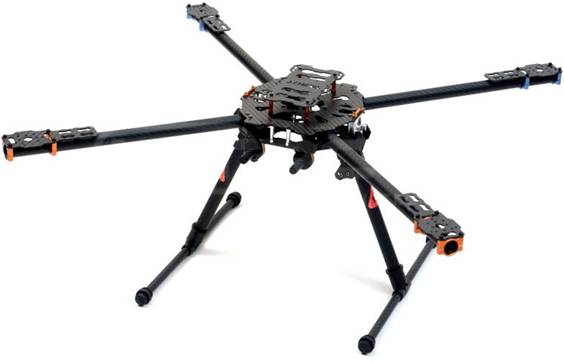 Unibody рамы или цельные рамы, составляют единую конструкцию с лучами, рис. 2.13. Делается так для того, чтобы упростить сборку, уменьшить вес и количество элементов крепления. Минус подобной рамы в не ремонтопригодности, так как при поломке одного луча придется менять раму целиком, а также полностью разбирать коптер.