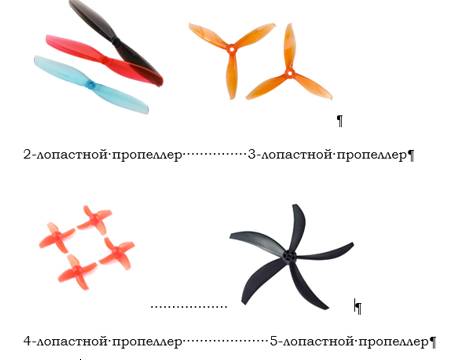 Конфигурация пропеллеров. Стандартные пропеллеры, используемые в квадрокоптерах, бывают: 2-лопастные, 3-лопастные, 4-лопастные, 5-лопастные, рис. 2.22.