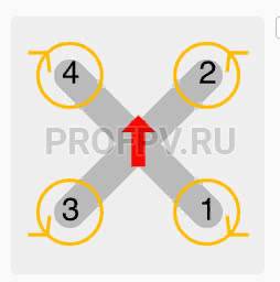 Схема установки пропеллеров. Прежде, чем устанавливать пропеллеры на квадрокоптер, нужно узнать, в правильную ли сторону будут крутиться моторы. Большинство квадрокоптеров летает на классической конфигурации, где передние пропеллеры крутятся в сторону камеры. Классическая схема кручения пропеллеров представлена на рис.2.23.