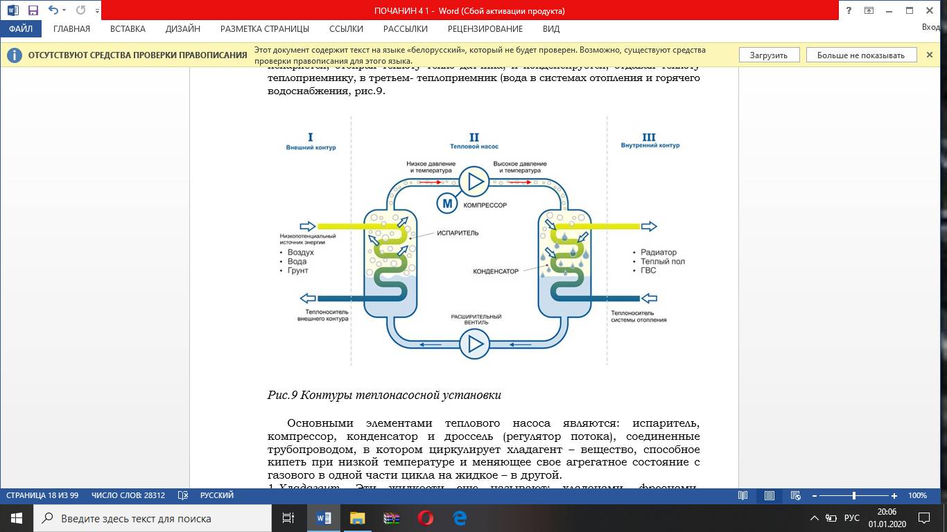 Схематично тепло насосную установку можно представить в виде системы из трех замкнутых контуров: в первом, внешнем, циркулирует теплоноситель, собирающий теплоту окружающей среды, во втором – хладагент (вещество, которое испаряется, отбирая теплоту тепло датчика, и конденсируется, отдавая теплоту теплоприемнику, в третьем- теплоприемник (вода в системах отопления и горячего водоснабжения, рис.9.