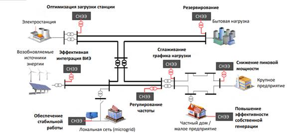 Возможные места установки СНЭЭ в энергосистеме представлены на рис. 2.5