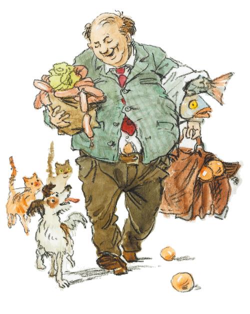 Толик быстро перебежал на другую сторону улицы и уже хотел свернуть в свой переулок, как вдруг чуть не столкнулся с толстым дядькой. Тот выходил из магазина. Кроме портфеля, в руках у него были теперь ещё и толстые свёртки. Из одного кулька выглядывали толстые сардельки, и дядька придерживал их толстыми пальцами. Да и сам он стал как будто ещё толще и ещё противнее улыбался своими толстыми губами.