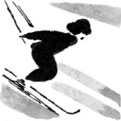 Владимир Иванович привёл нас на другую горку. Она была поменьше, и мы стали кататься кто как может. Владимир Иванович натыкал на склоне ветки и стал ездить между ними.