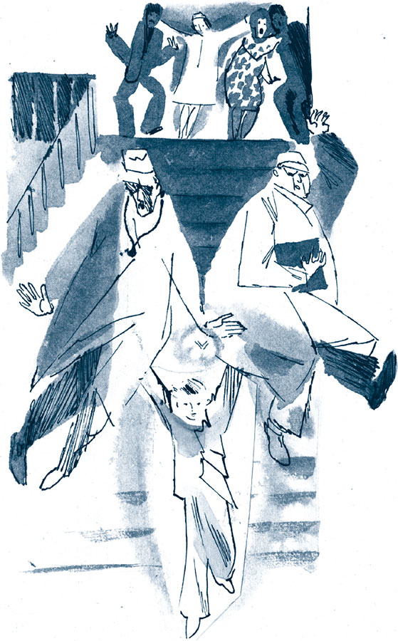 Покраснев от обиды, Толик бросился со сцены. За кулисами он как вихрь пронёсся сквозь толпу первоклассников, готовящихся к выступлению, сбил с ног одного мальчика и одну девочку, оттолкнул Лену Щеглову, которая хотела его задержать. Лена пролетела метра три по воздуху, упала на большой барабан и заплакала. А Толик выбежал в коридор.